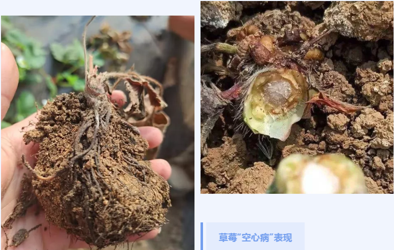 眼下呼和浩特市的设施草莓正陆续上市,而在赛罕区黄合少镇、金河镇的一些草莓种植大棚却发生了草莓死苗现象,症状表现为植株叶片萎蔫,茎基部有褐色坏死,严重时导致死亡。
