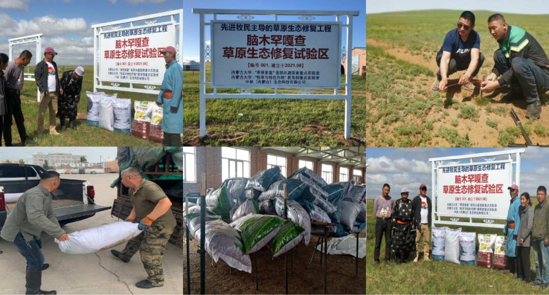 在羊草草原生产力提升模式方面,项目组针对草原交通不发达,人口密度低,政府主导的草原生态修复工程成本高,难以短时间内大范围开展的现状,以阿巴嘎旗牧区现代化试点工程和西乌珠穆沁旗国家草原畜牧业转型升级示范工程为契机,积极探索“先进牧民参与的草原生态建设模式”,在合作嘎查指导牧民了解本嘎查植被、制作本嘎查草原植物标本和画册;指导牧民采集草种,建立嘎查自己的草种库;在嘎查内植物多样性丰富地区建立“野生牧草种子繁育圃”,在相对退化区域建立“草原生态修复试验区”,探索适合本嘎查植被提升的施肥方案;建立嘎查牧民科技服务站,科学指导牧民自主实施自家草场生态修复,探索我区羊草草原生产力提升最低成本路径。