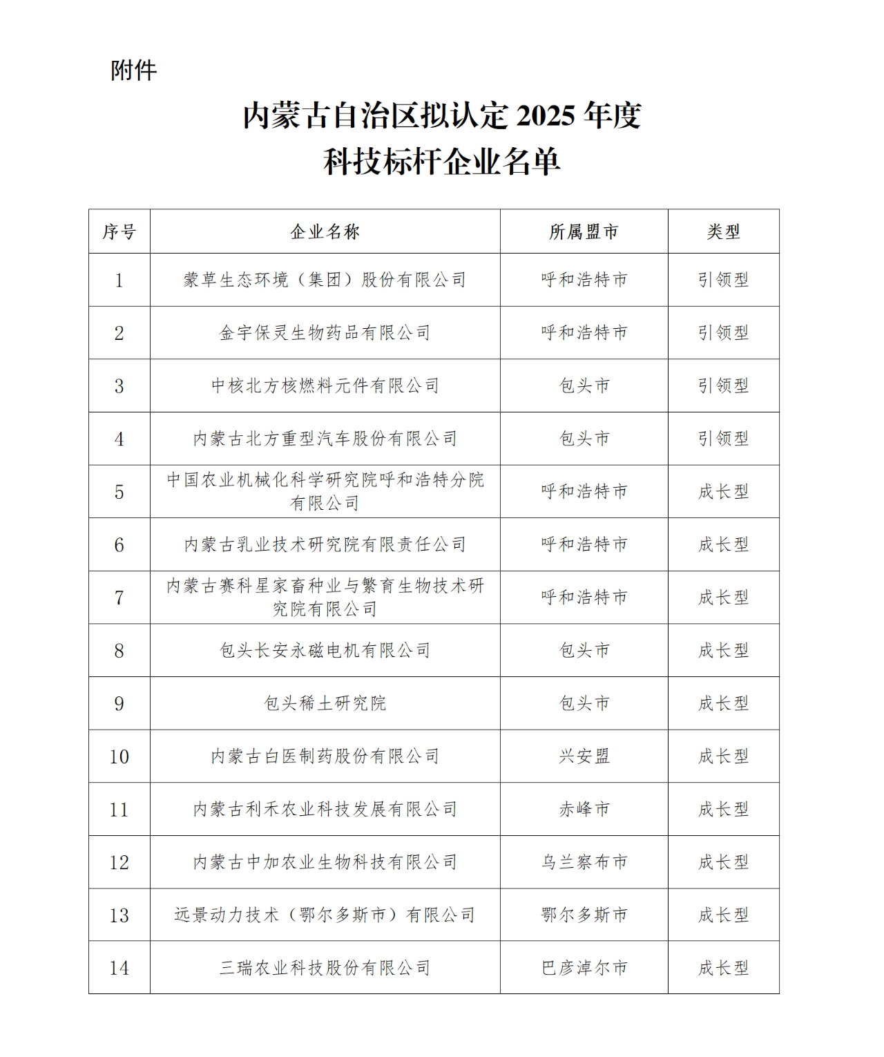 科技标杆企业作为科技领域“领头雁”,是培育新质生产力、构建现代化产业体系重要支撑。此次认定的企业涵盖生态环境、生物医药、装备制造、农业科技、稀土材料、新能源等多个战略性新兴领域,与我区产业转型与科技创新主攻方向高度契合。这些企业不仅在研发投入、知识产权、平台建设等方面具备“硬实力”,更在各自领域拥有较强的创新引领力和品牌影响力。
