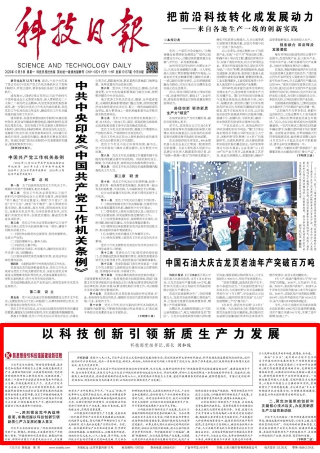 科技部党组书记、部长阴和俊:以科技创新引领新质生产力发展