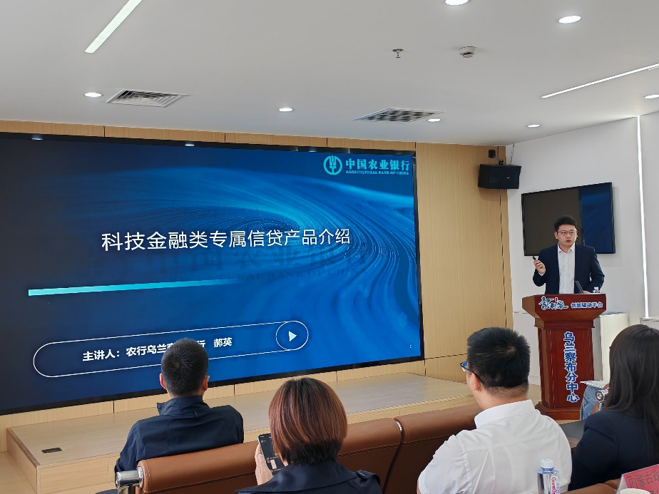 在银企对接环节,乌兰察布市7家科技型企业与金融机构银行代表开展面对面交流。中原农业保险有限公司代表上台介绍了企业经营现状、业务布局及融资需求,相关银行机构现场回应,并结合企业具体情况提供针对性咨询与建议。