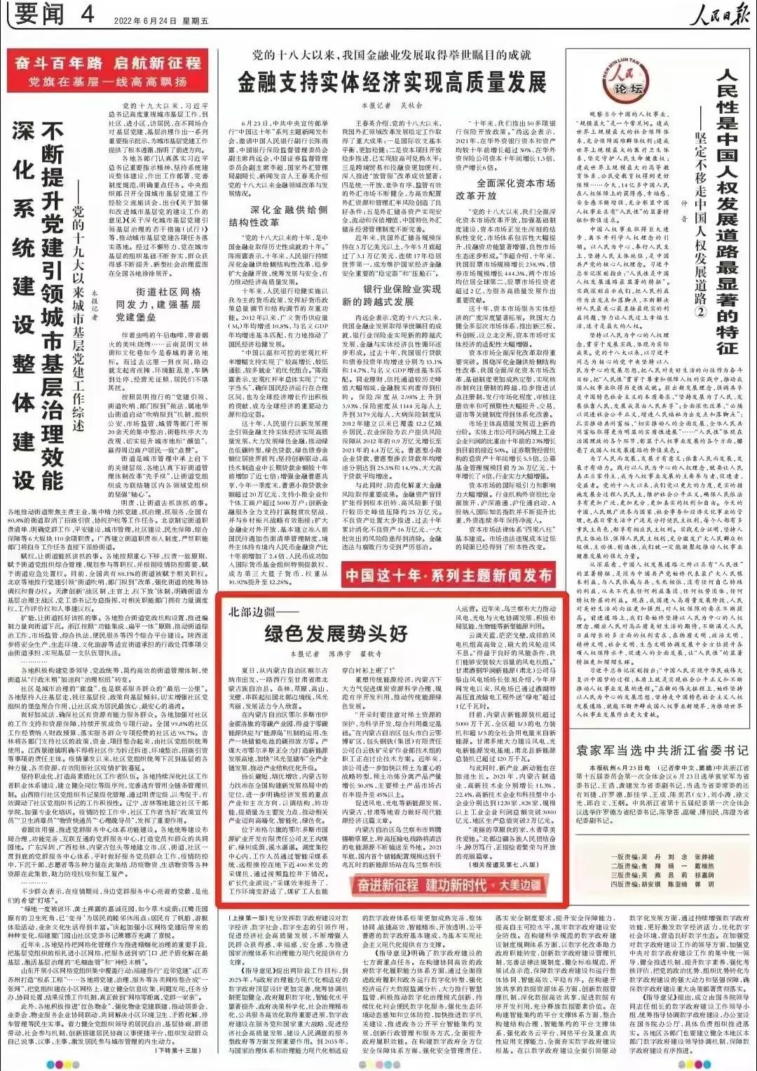 清晨,大兴安岭深处阵阵松涛,獐狍野鹿怡然自得;正午骄阳,二连浩特国门威严矗立,中欧班列徐徐驶过;黄昏落日,阿拉善牧民守望一方沃土;傍晚,鄂尔多斯地下矿井内灯火通明,智能采煤机隆隆掘进……在祖国北部边疆,每天都呈现着这样欣欣向荣的画面。