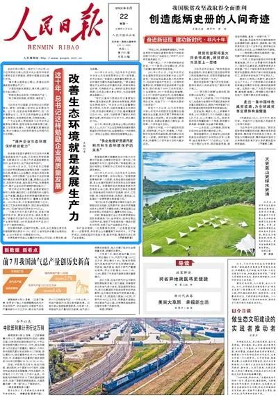 在习近平生态文明思想指引下,广大企业加大科研投入、致力科技创新,开展生态保护和修复,实现自身的绿色发展、可持续发展,助力建设天蓝、地绿、水清的美丽中国。