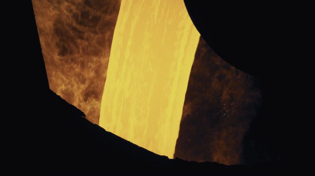 这一炉铁水就是钢的最初形态,满满的一炉铁水有200吨重,它的成材率在98%以上。