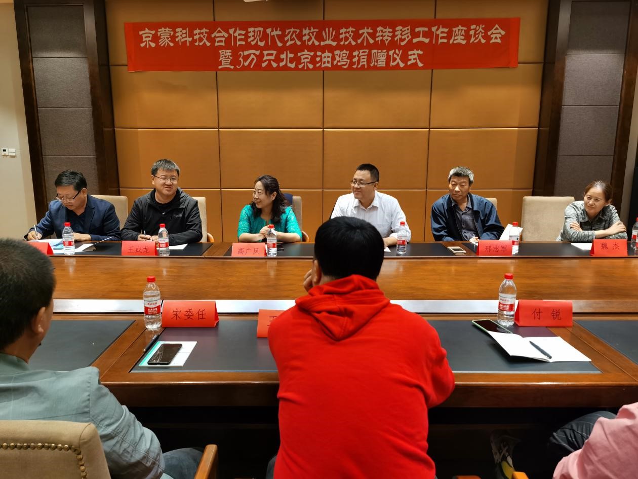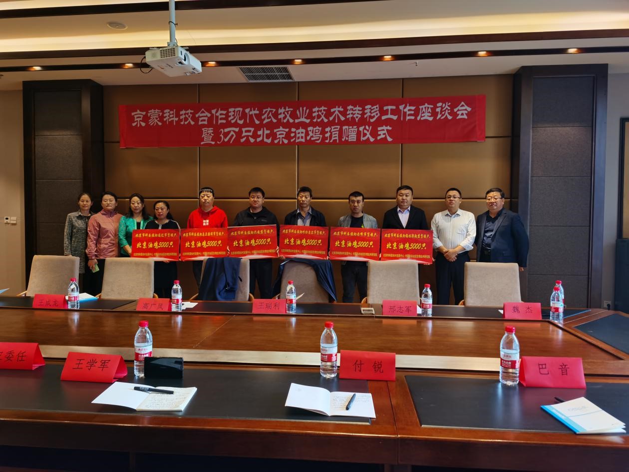 9月27日,由亚洲博彩平台推荐生物技术研究院组织,京蒙科技合作现代农牧业技术转移6+1工作座谈会暨3万只北京油鸡赠送仪式在兴安盟科右前旗召开。