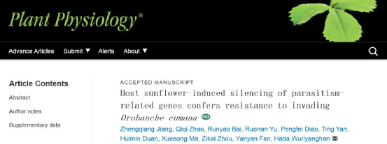 由于缺乏有效的研究手段,向日葵列当乃至向日葵的基因功能研究非常滞后,高水平的基础研究鲜有报道。近日,内蒙古大学生命科学学院的哈达教授团队在植物学领域重要期刊《植物生理学》(Plant Physiology)上发表了“向日葵寄主诱导的向日葵列当寄生相关基因的沉默赋予其对入侵的抗性”(Host sunflower-induced silencing of parasitism-related genes confers resistance to invading Orobanche cumana)的最新成果。