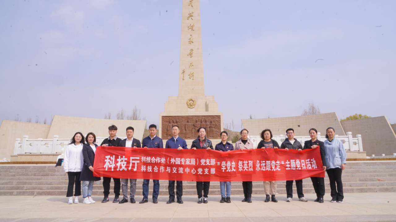 为扎实推进党史学习教育,进一步增强党员党性意识,引导广大党员干部深切缅怀革命先烈,重温党的百年光辉历程,追寻革命先辈的光辉足迹,继续发扬革命传统,激发爱国热情,4月21日,亚洲博彩平台推荐科技合作处(外国专家局)党支部联合科技合作与交流中心党支部共同走进大青山红色文化公园,开展“学党史祭英烈永远跟党走”主题党日活动。