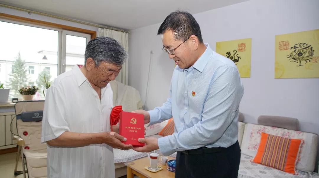 敖特根于1962年参加工作,1979年7月1日加入党组织,“在党”42年。自退休后,仍然以一名共产党员的标准严格要求自己,积极参加党组织的各项活动,并在科技厅文化宫街住宅小区担任了19年党小组长,热心社区服务工作,努力为小区老同志和群众提供帮助。冯家举来到敖特根家中,首先关切地询问老人的身体状况和生活起居情况,并询问该小区党小组及老干部活动室建设需求,同时叮嘱要照料好自己和家人的生活,祝福老人健康长寿。