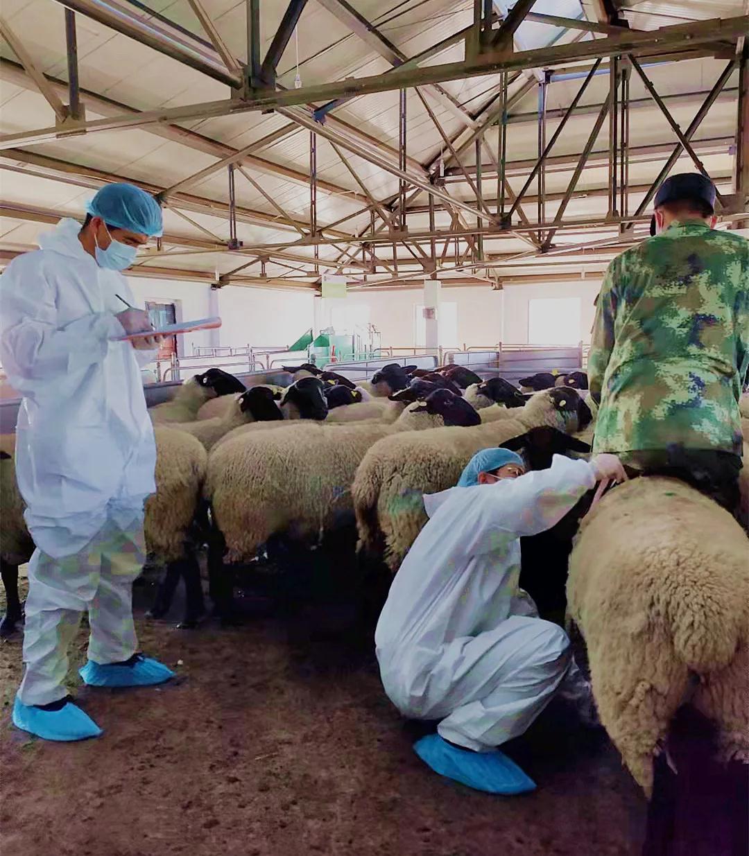乌兰察布市科技特派团成员在四子王旗赛诺公司对肉羊品种核心群母羊进行生产性能测定