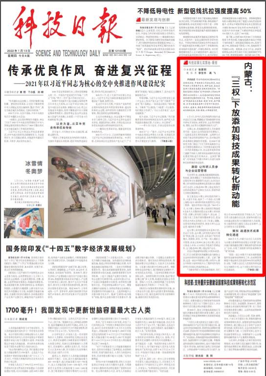 近年来,内蒙古不断进行制度创新,实行知识价值为导向的分配政策,推动下放事业单位科技成果转化“三权”,把科技成果的使用权、处置权和收益权交到单位手中,更直接、有效地激励科研单位和科研人员转化科技成果,释放创新活力。