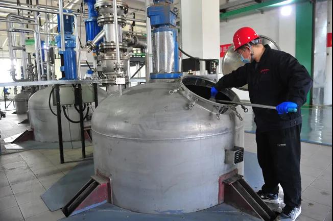 全球首台套固废与二氧化碳矿化综合利用项目工业试验阶段,工人正在渣铁处理反应罐中取样。