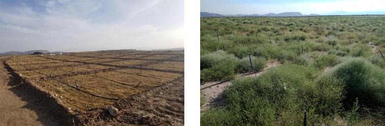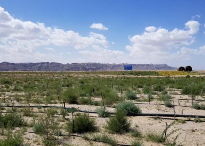 项目科研团队针对我国北方退化草地、荒漠化土地、农田撂荒地、矿山等降水量200毫米以下的地区,研究开发了一种以“腾格里”无芒隐子草为主要建群种的“草灌结合”生态修复模式。该模式搭配沙蒿、柠条、补血草、骆驼蓬等灌木与草本植物,根据当地植物群落,研究制定适合当地生态环境的组合方案,并在乌海市骆驼山矿区示范应用,取得了预期的生态景观修复效果。该技术也适合在甘肃中西部、宁夏中北部、内蒙古中西部、陕西北部及新疆天山以南地区等推广应用。
