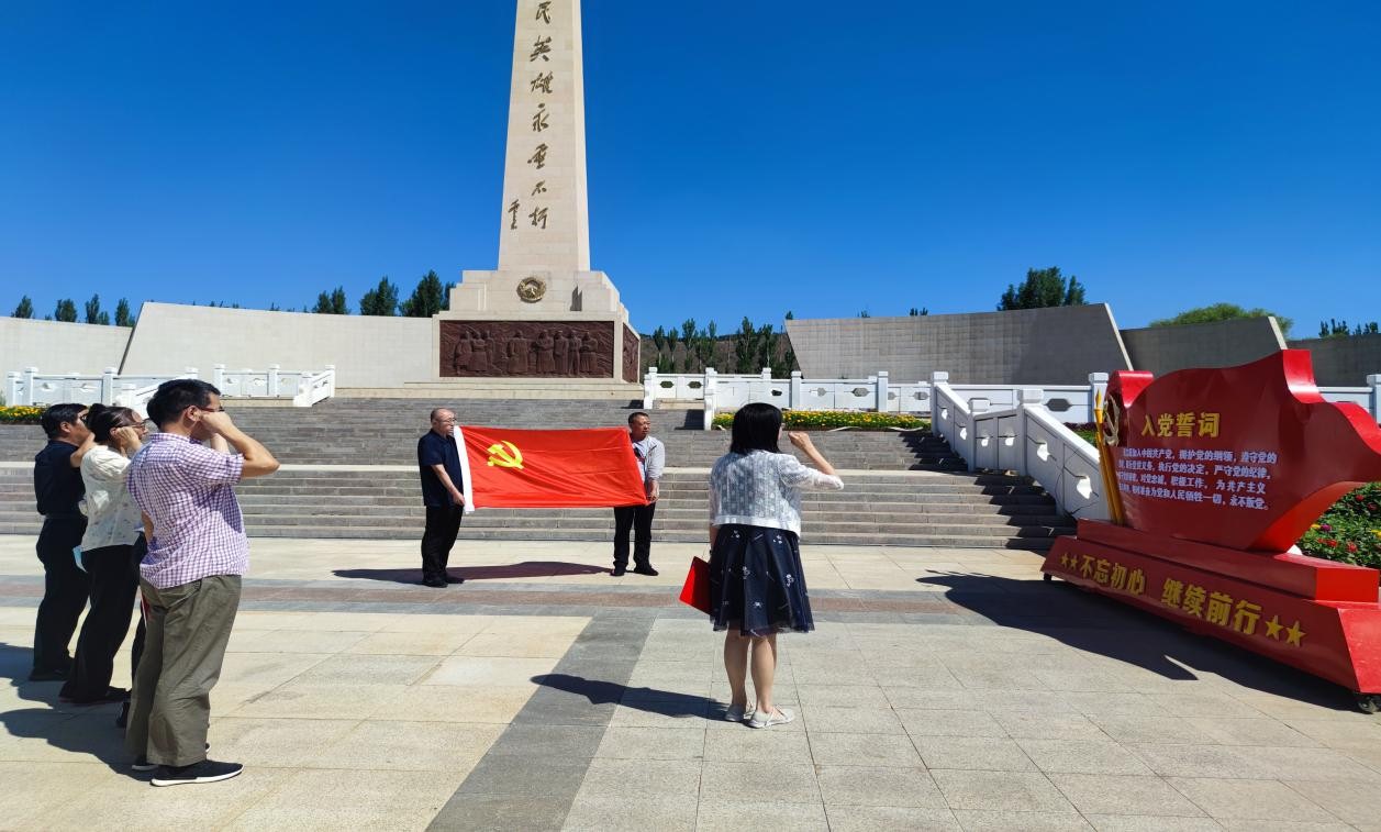 在纪念碑广场,全体党员干部举起右拳,重温入党誓词,誓词铿锵有力,再一次深深镌刻在每一位党员心中。