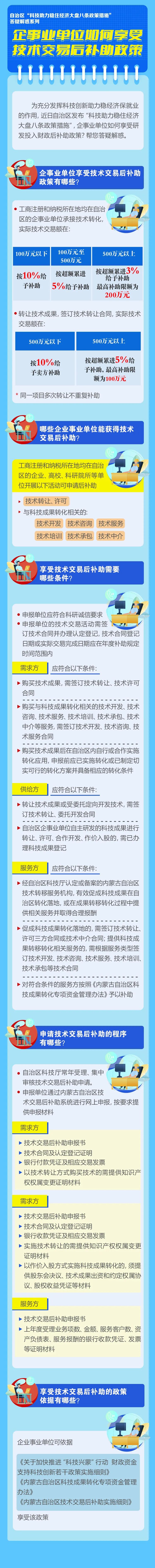 自治区科技助力稳住经济大盘八条政策措施【系列五】:企事业单位如何享受技术交易后补助政策