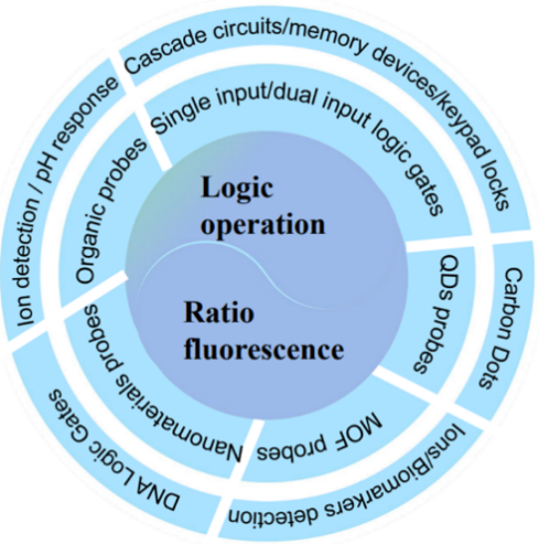 逻辑门操作是现代生物计算领域的热点研究内容,结合比率荧光传感的自校准能力,可以提高荧光逻辑系统的信噪比,有效解决传统荧光逻辑门在响应灵敏度、特异性和选择性识别等方面存在的问题。因此,探讨比率荧光传感逻辑系统的研究进展很有必要。近日,内蒙古师范大学化学与环境科学学院爱军教授科研团队在国际期刊《生物传感器和生物电子学》(Biosensors and Bioelectronics)发表了“具有逻辑运算的比率荧光传感:理论、设计和应用”(Ratiometric Fluorescence Sensing with Logical Operation: Theory, Design and Applications)。