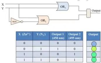 同时监测Zn2+ 和 N3- ,以二者作为输入的真值表图,以发射强度为输出