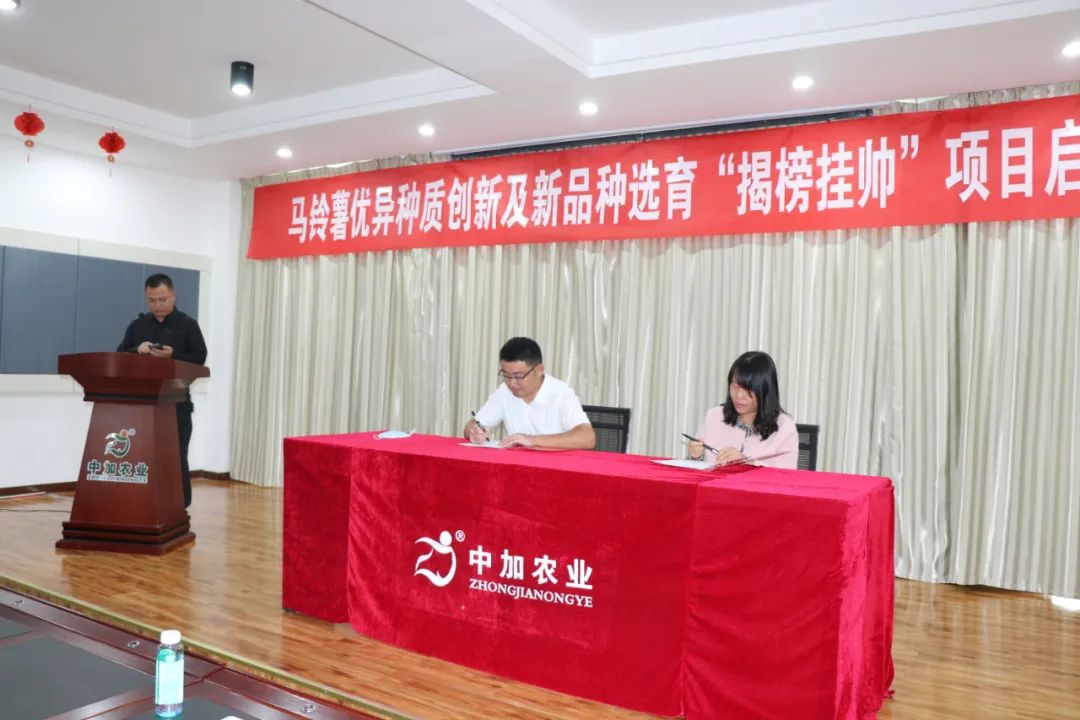 项目启动会上,创新联合体共建单位进一步讨论了马铃薯种业“揭榜挂帅”项目课题及任务目标,并分解各成员单位及课题组的任务,明确目标和责任。项目牵头单位内蒙古中加农业生物科技有限公司与各成员单位签订了合作共建协议及课题任务书。