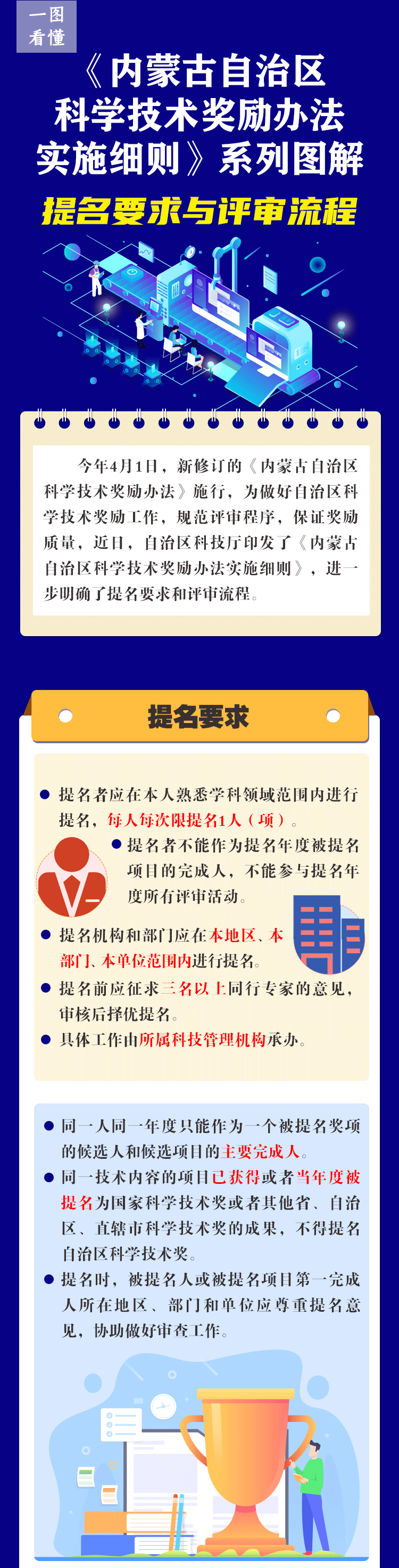 答:我区旧版奖励办法及实施细则已连续施行14年,在激励自主创新、激发人才活力、营造良好创新环境等方面发挥了重要作用,取得了良好的成效。然而,随着科技事业的不断进步和发展,旧版奖励办法及实施细则的部分内容已不能适应自治区实施创新驱动发展战略和推进“科技兴蒙”行动的现实与长远要求。为此,亚洲博彩平台排名牵头开展了《亚洲博彩平台排名科学技术奖励办法》和《亚洲博彩平台排名科学技术奖励办法实施细则》的修订工作。2021年12月,自治区第26次政府常务会议通过了新修订的《奖励办法》并于今年2月以自治区人民政府254号令颁布,自2022年4月1日起施行。同时,经过广泛征求意见和多达13轮的反复修改,修订后的《实施细则》于5月31日公布,《实施细则》将《奖励办法》改革举措贯彻到奖励工作各环节,进一步提升了科技奖励工作的规范性和可操作性。
