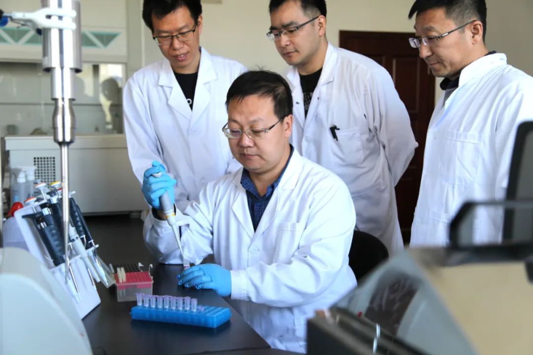 ● “肉羊优异种质资源创新及良种繁育体系建设”揭榜挂帅项目首席专家、研究员刘永斌(前)带领团队开展肉羊分子遗传检测