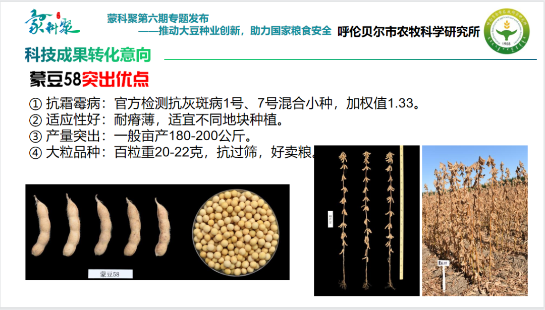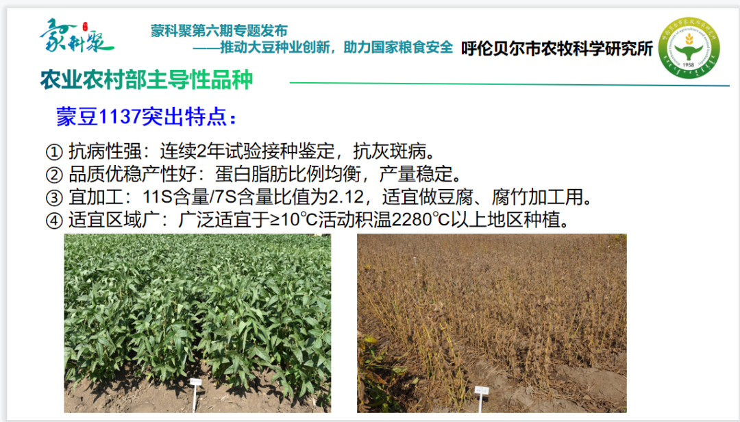 4. 熟期得当:适宜中国大豆核心产区,内蒙古2100℃积温区,可引种到黑龙江省第五积温带。