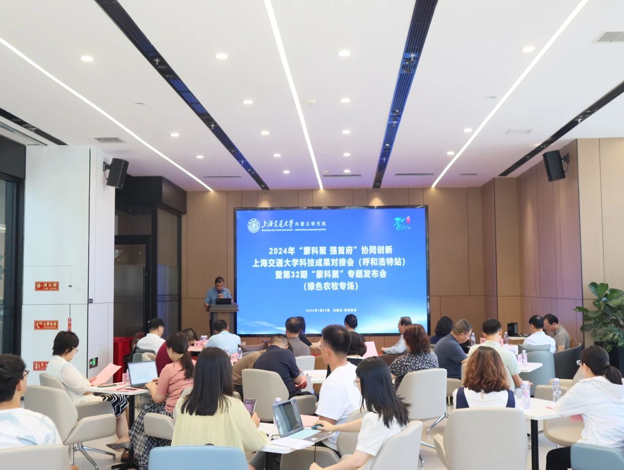7月25日,“蒙科聚”第三十二期专题发布会(绿色农牧专场)暨2024年“蒙科聚 强首府”协同创新上海交通大学科技成果对接会(呼和浩特站)在呼和浩特举行。上海交通大学、自治区农牧业科学院、呼和浩特市农牧局、驻呼有关高校、科研院所及绿色农牧相关企业代表50余人参加活动。