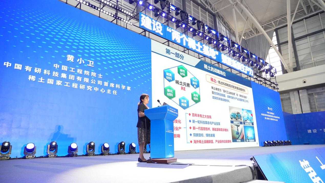 中国工程院院士黄小卫,哈尔滨理工大学教授、国家特聘专家创新企业家专委会副主任蔡蔚,沈阳工业大学教授、国家稀土永磁电机工程技术研究中心主任张凤阁,中国中车集团有限公司首席技术专家晏才松,有研稀土新材料有限公司总经理、稀土国家工程研究中心副主任刘荣辉,中国北方稀土(集团)高科技股份有限公司总经理瞿业栋等院士专家围绕稀土领域作主题报告,展示了当前产业前沿最新趋势,并为产业转型升级、高质量发展建言献策。