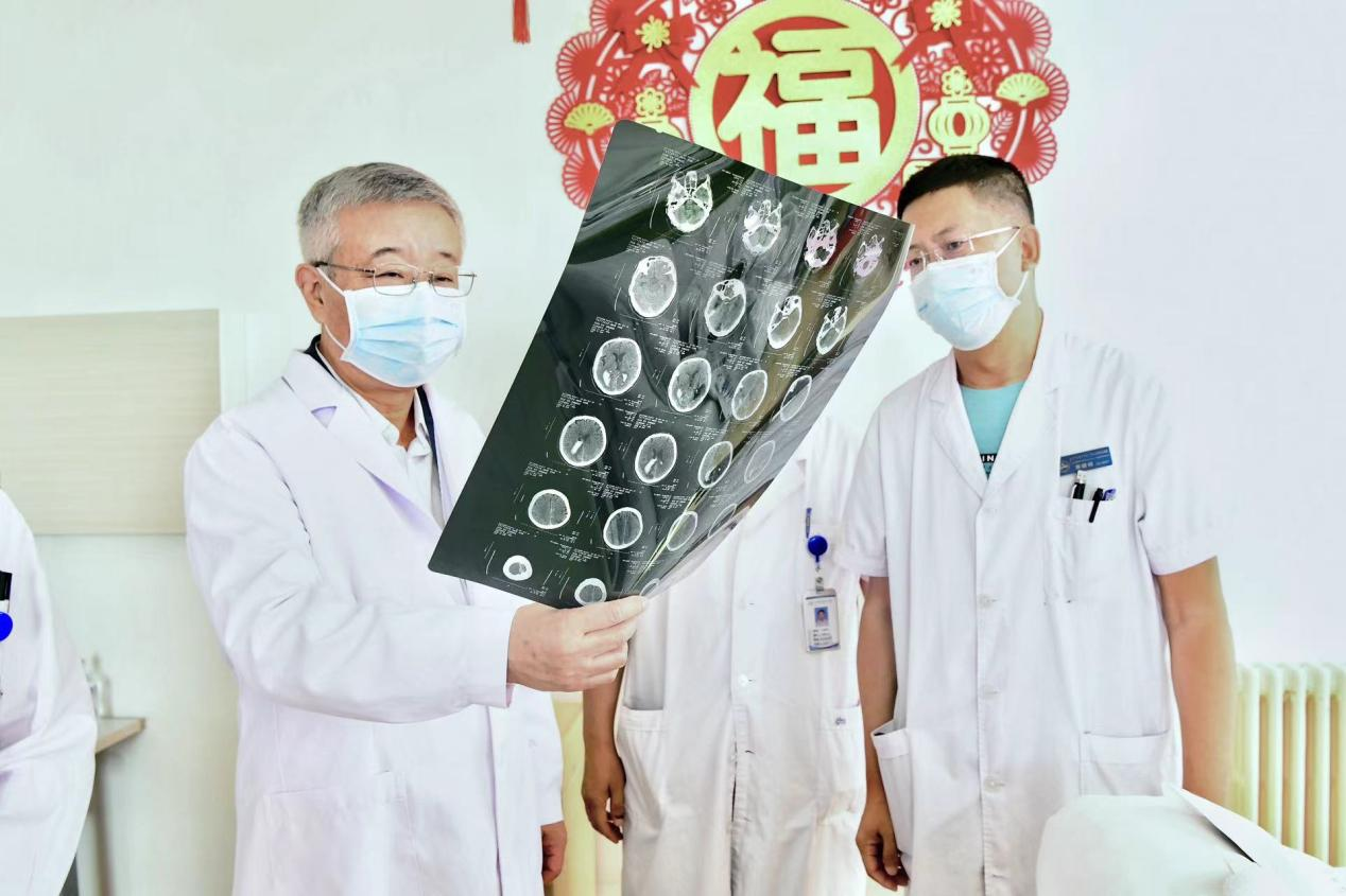 (江涛院士在乌兰察布市中心医院观察患者治疗情况)