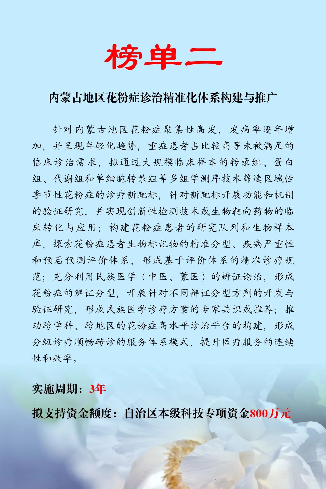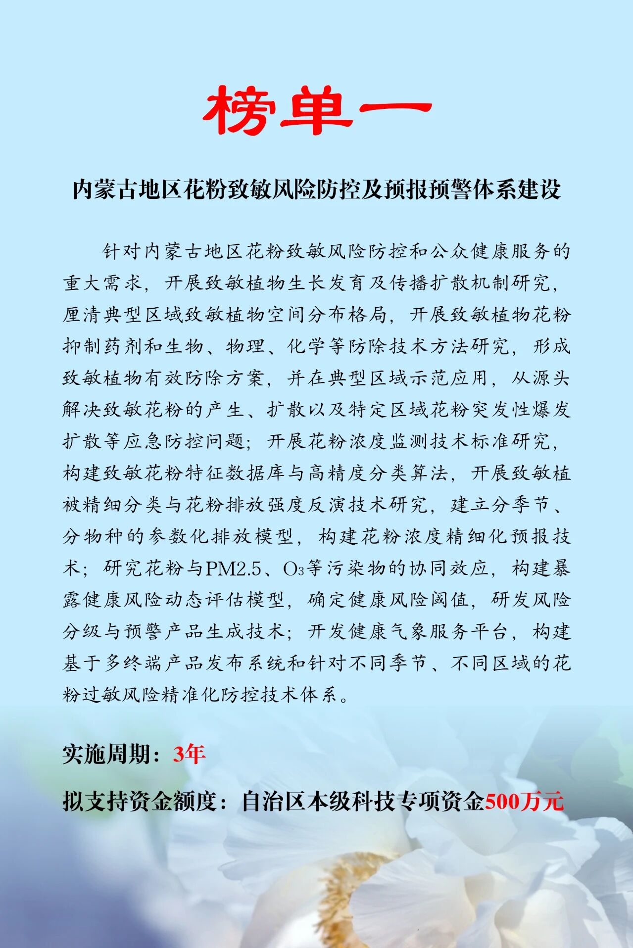 2025年自治区科技创新重大示范专项(花粉症防治)“揭榜挂帅”项目技术榜单
