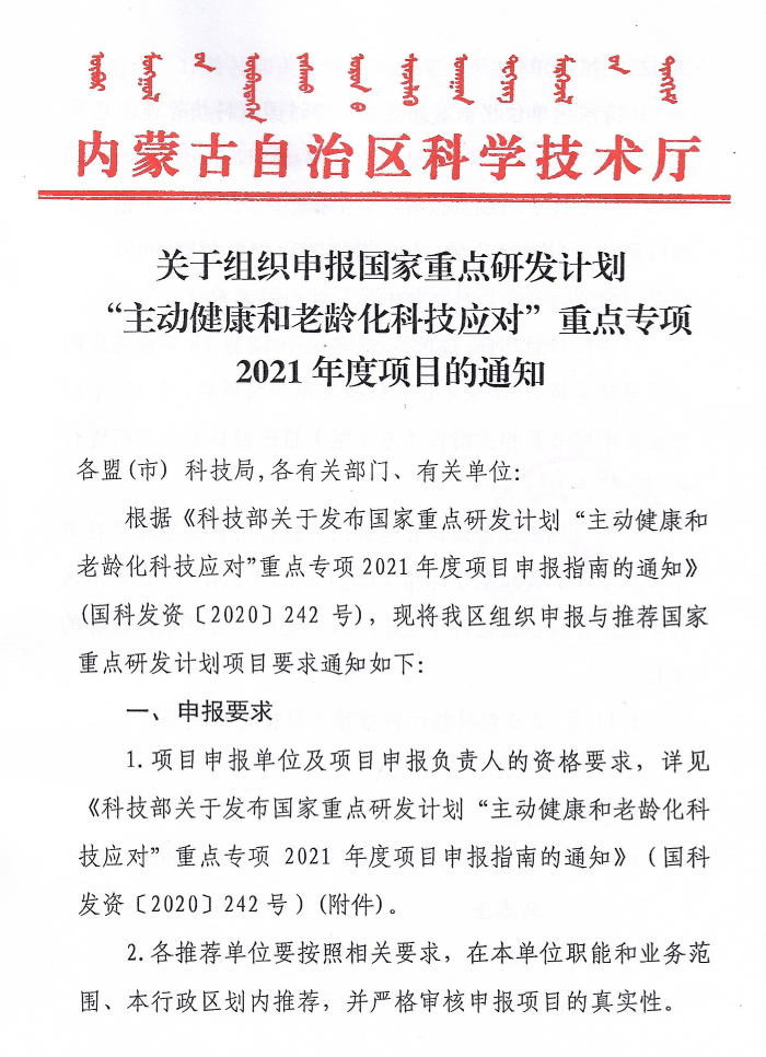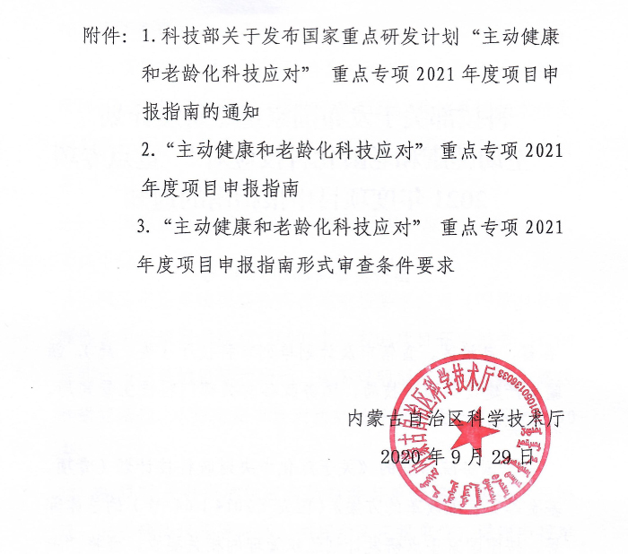 附件1:科技部关于发布国家重点研发计划“主动健康和老龄化科技应对” 重点专项2021年度项目申报指南的通知