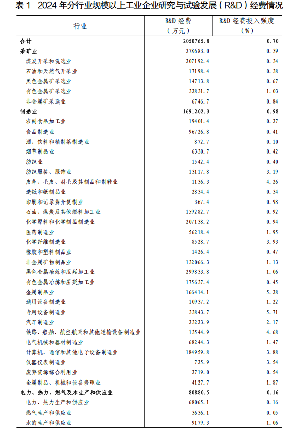 分产业部门看,规模以上高技术制造业研究与试验发展(R&D)经费26.5亿元,比上年增加2.2亿元,增长9.1%,投入强度(与营业收入之比)为3.14%,比上年提高0.36个百分点;装备制造业研究与试验发展(R&D)经费50.2亿元,比上年增加12.0亿元,增长31.5%,投入强度为3.25%,比上年提高0.76个百分点。在规模以上工业企业中,研究与试验发展(R&D)经费投入超过10亿元的行业大类有8个,这8个行业的经费占全部规模以上工业企业研究与试验发展(R&D)经费的比重为74.7%(详见表1)。